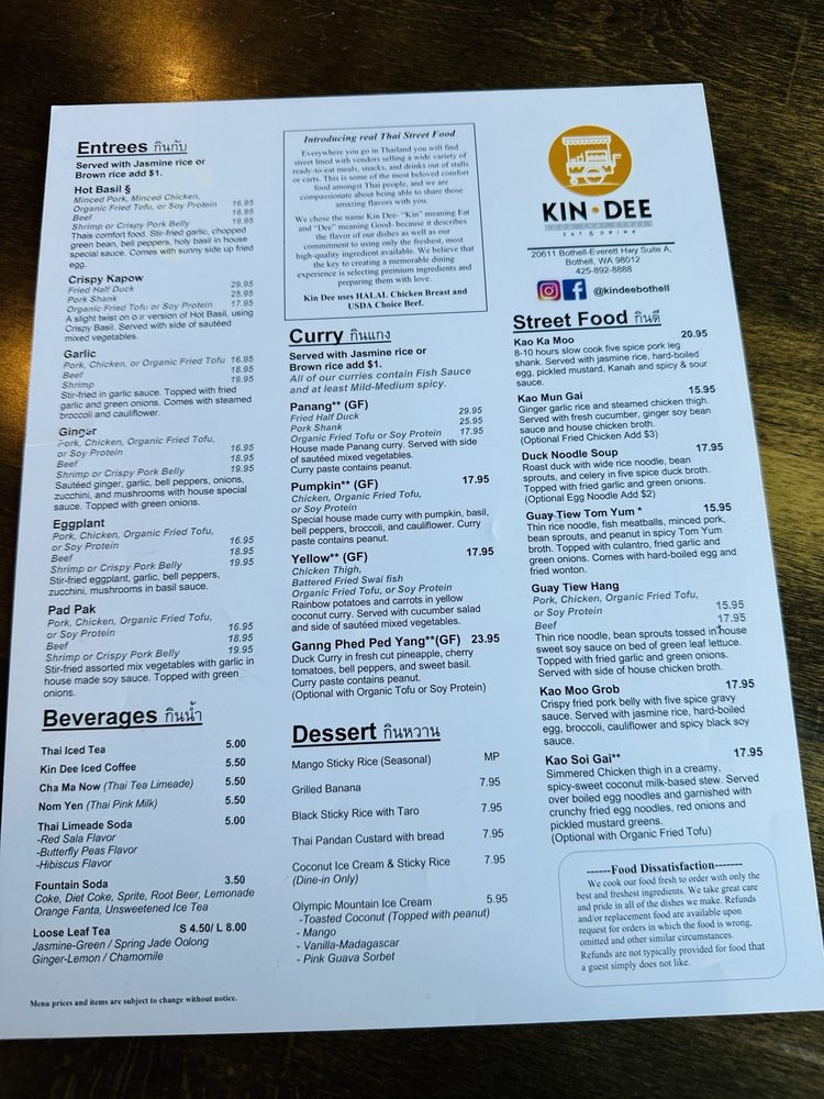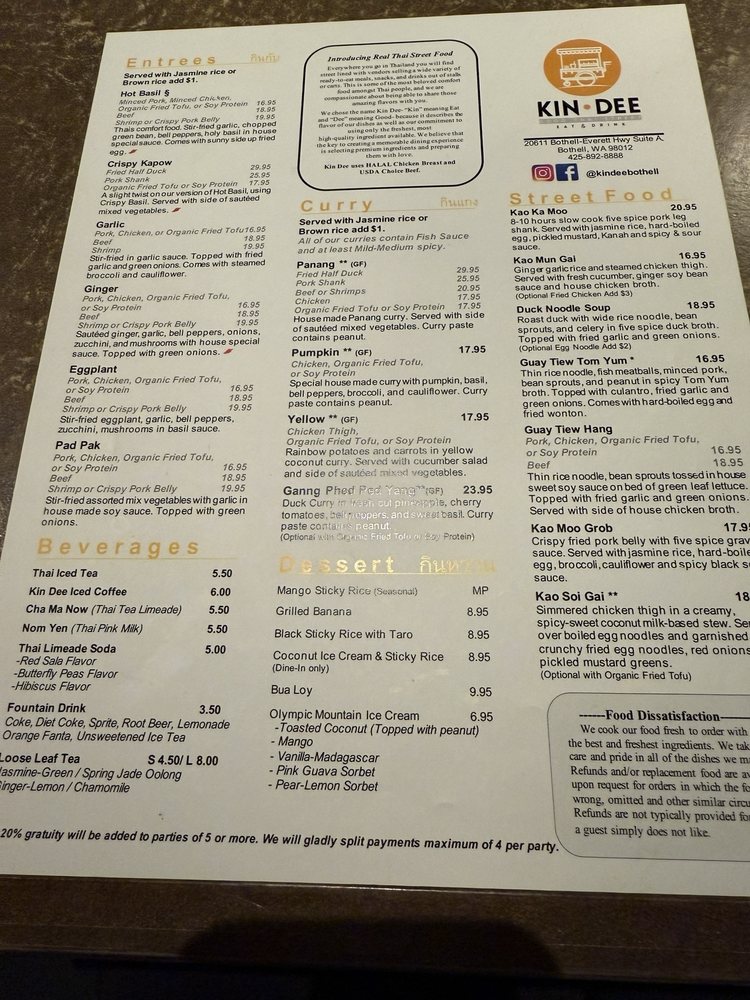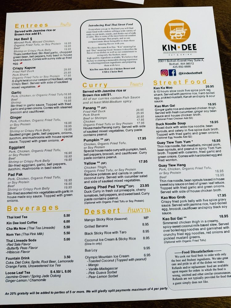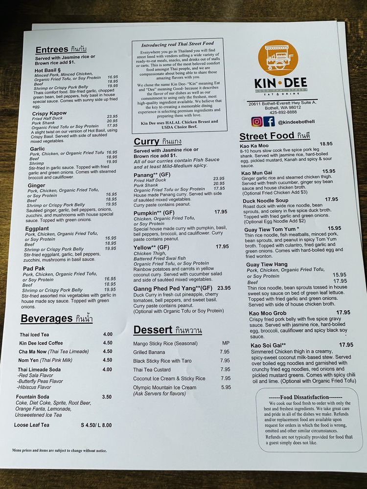 "Kin Dee Bothell" is a Thai soup restaurant located in Bothell, WA, that offers a variety of vegan and vegetarian options. The restaurant has a casual, trendy, and upscale ambiance with moderate noise levels, making it a perfect spot for groups or a dinner outing. Kin Dee Bothell provides a range of amenities such as reservation services, delivery, takeout, and accepts Android Pay, Apple Pay, and credit cards. Additionally, the restaurant offers waiter service, has private lot parking, a full bar, and outdoor seating where dogs are allowed. With happy hour specials and the presence of TVs, Kin Dee Bothell promises a delightful dining experience with its authentic Thai flavors and cozy atmosphere.
